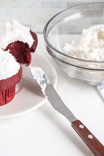 The spatula is 8 inches long and its blade measures 4.25 inches, giving it added versatility. Along with icing cakes, this offset spatula is also good for turning cookies or lifting baked goods out of the pan. Made of wood and stainless steel, it is durable and easy to maintain.