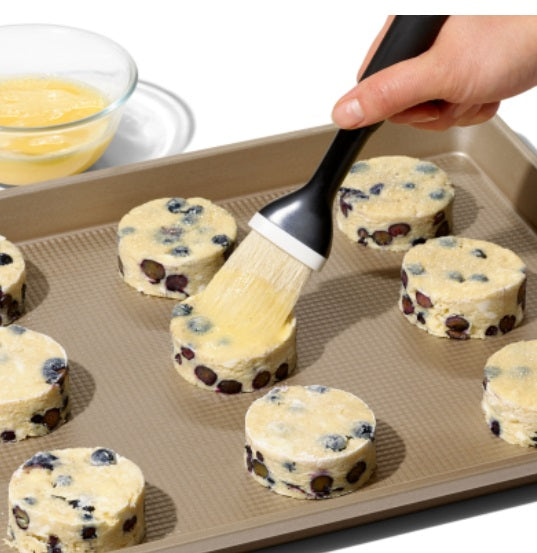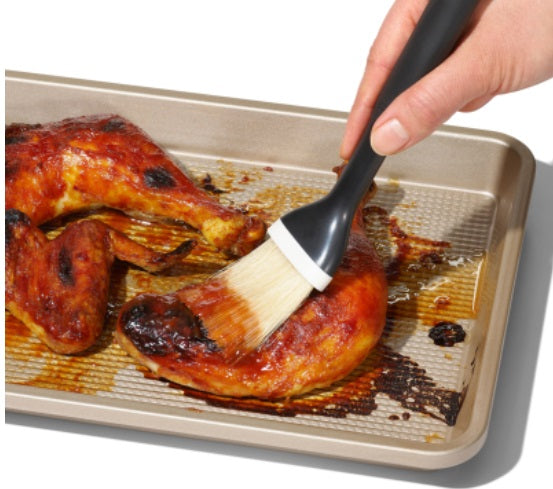 Made with thin, natural fibers, the Oxo Pastry Brush is extremely flexible. Soft and thick, its bristles quickly grab hold of your liquids and will glide easily over your favorite pastries. This natural bristle pastry brush is ideal for baking tasks like glazing donuts or applying egg wash to pie crust.