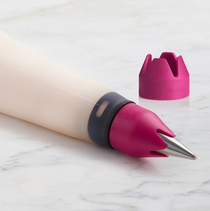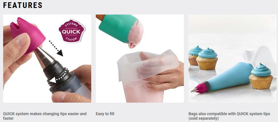 The decorating bag is very easy to fill and use. The couplers feature a system that allows you to change the tips easily and quickly. The couplers are compatible with most standard metal tips, allowing you to use the tips you already own.