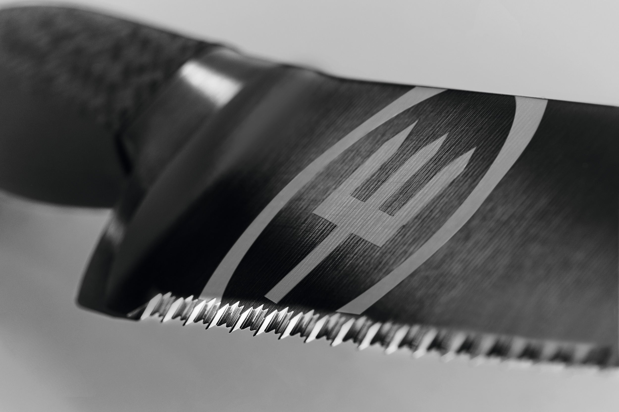 Features: Double-serrated edge, non-slip grip, scratch-resistant coating