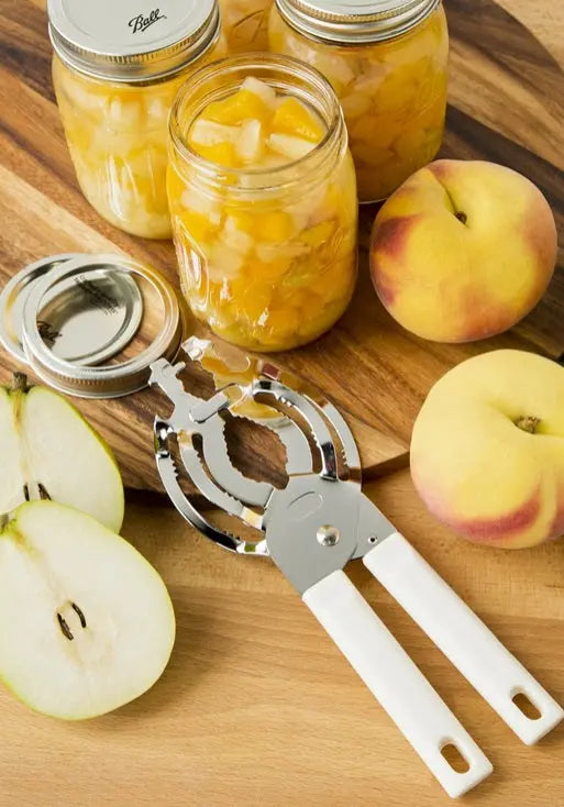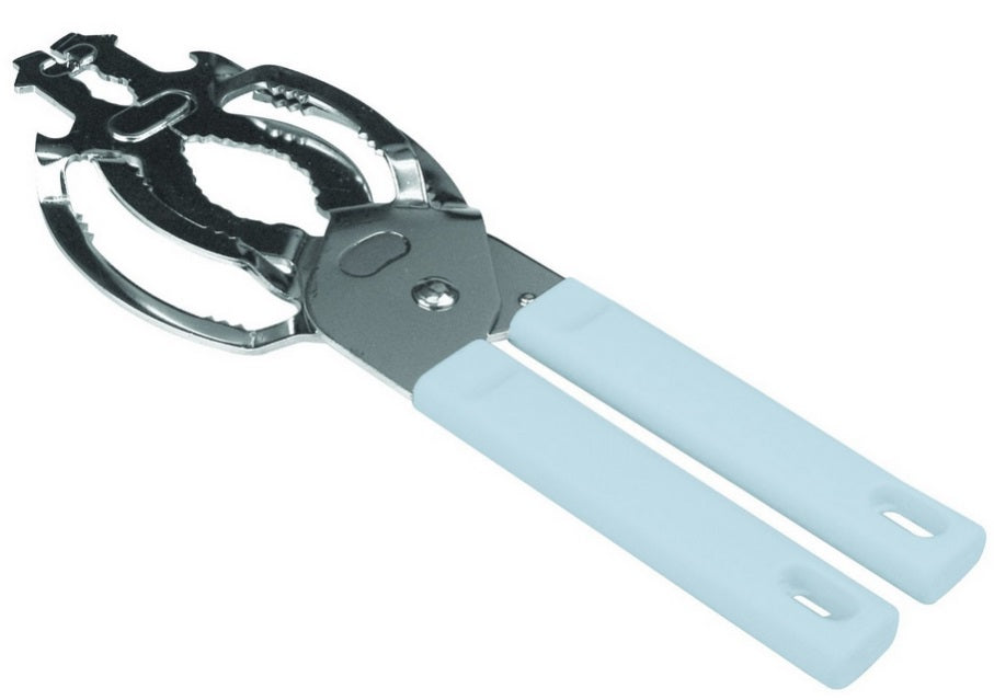This easy to use jar and bottle opener features a super sturdy stainless steel construction. To use, simply set the opener on top of a jar lid and then turn to easily open the jar.