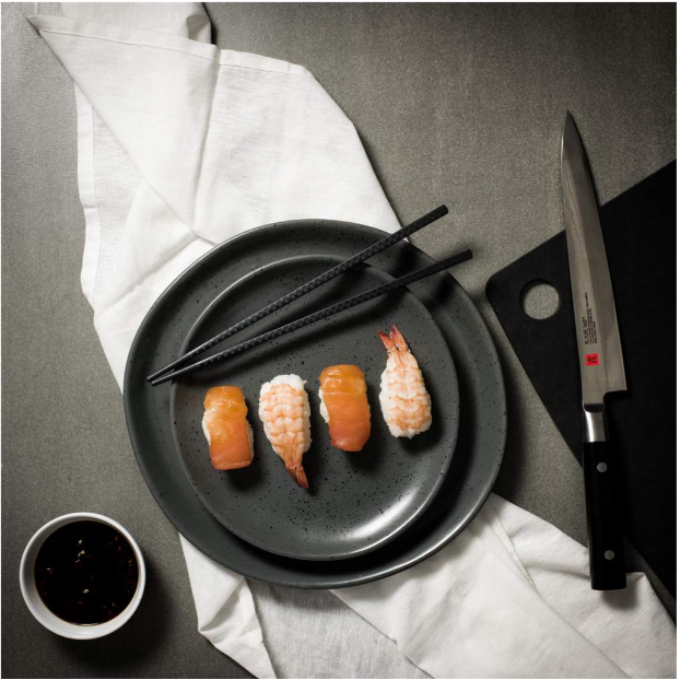 The Kasumi Damascus Kitchen Slicer is built for smooth, even slicing. It glides through meats, fish, and large veggies with control and ease.