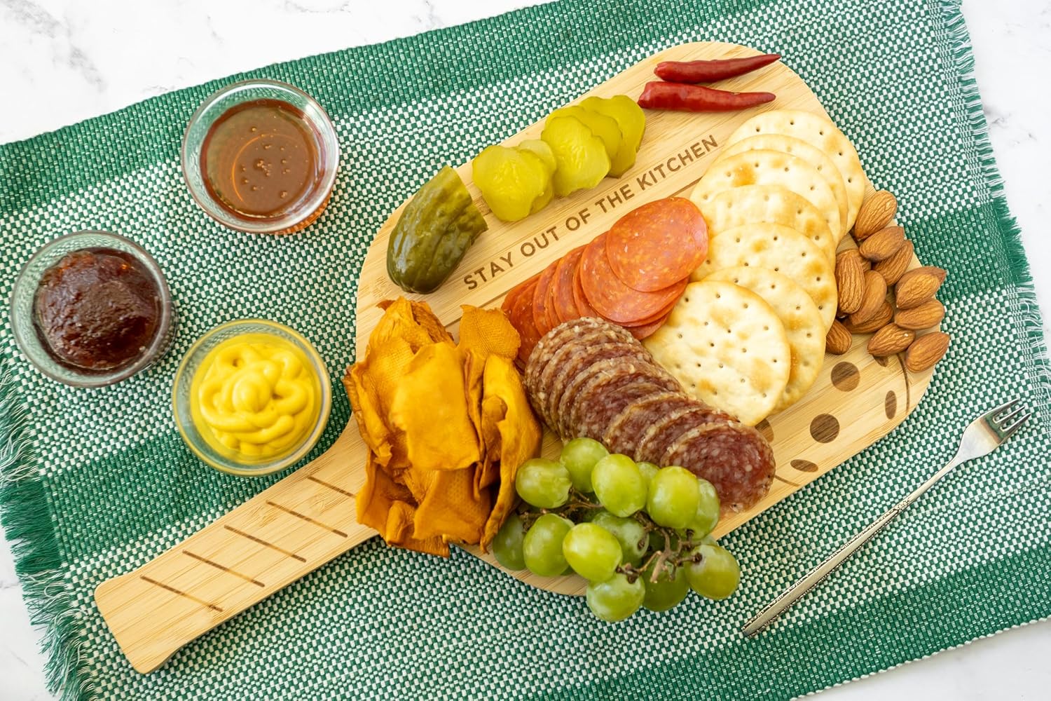The Fox Run Pickleball Cheese Paddle Set brings a fun and stylish twist to your post-game snack time. Made from eco-friendly bamboo, these paddles are perfect for serving cheese, crackers, fruit, vegetables, and more after a game.