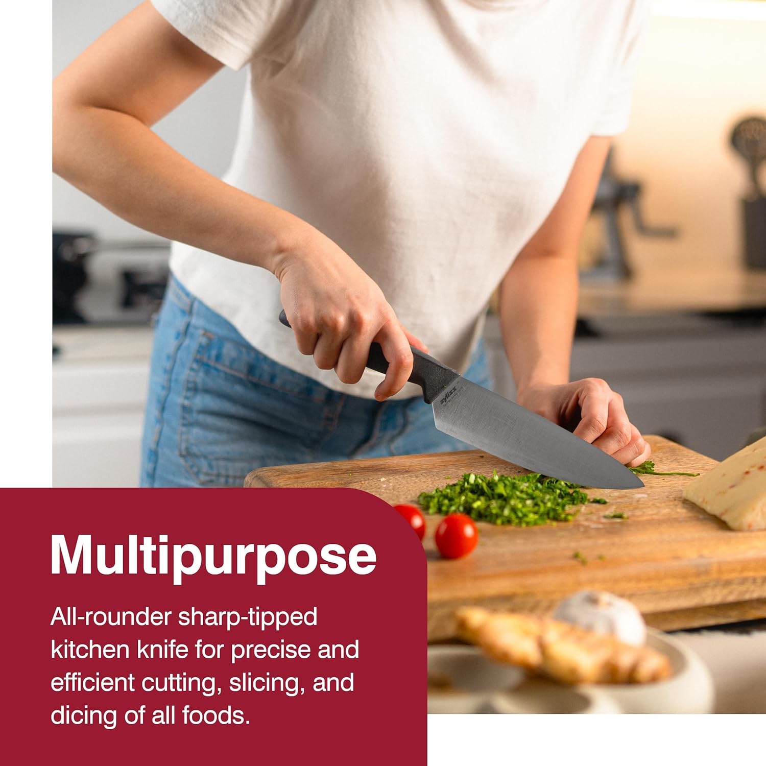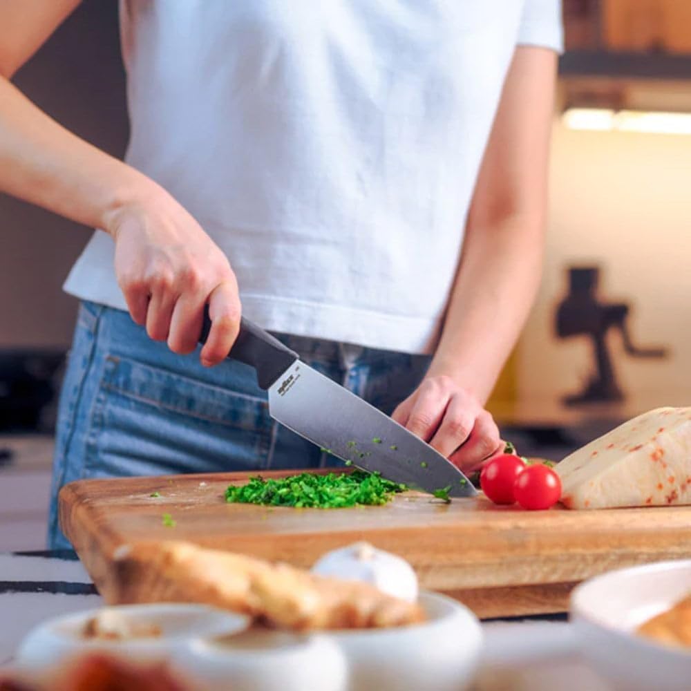 The Zyliss Chef Knife is crafted for versatile kitchen use. Its stainless steel blade handles chopping, slicing, and dicing with ease. The balanced design ensures control and smooth performance every time.