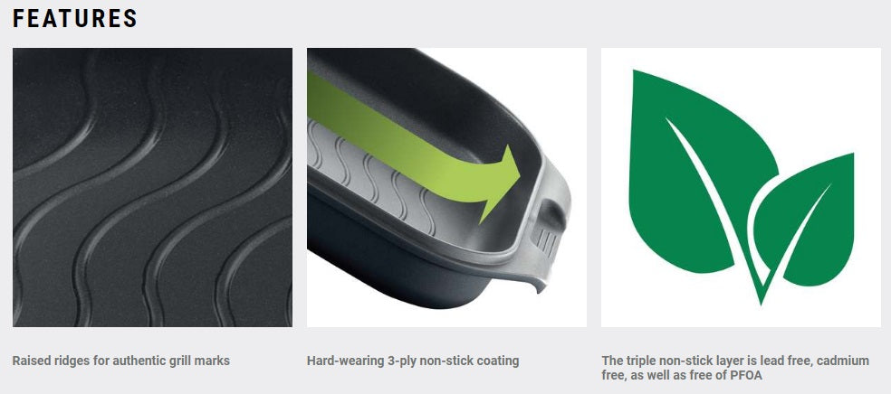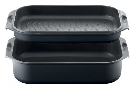 The Trudeau Heroic Roaster & Grill Set is a space-saving, 2-in-1 solution for roasting, grilling, steaming, or slow-cooking. With cast aluminum construction and a 3-ply non-stick coating, it delivers power and performance in a compact design.