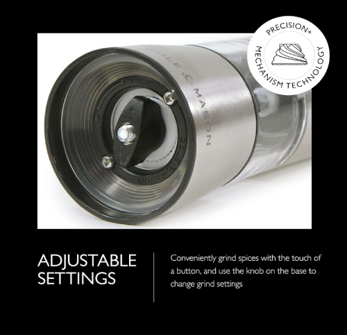 Upgrade your kitchen routine with the Cole & Mason Electric Salt Mill — sleek, easy, and built to perform.