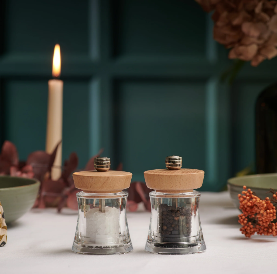 The Cole & Mason Holborn Pepper Mill in natural beech wood combines timeless craftsmanship with modern function. Its smooth finish and clear acrylic accents showcase the wood’s natural grain, bringing warmth and style to any dining table.