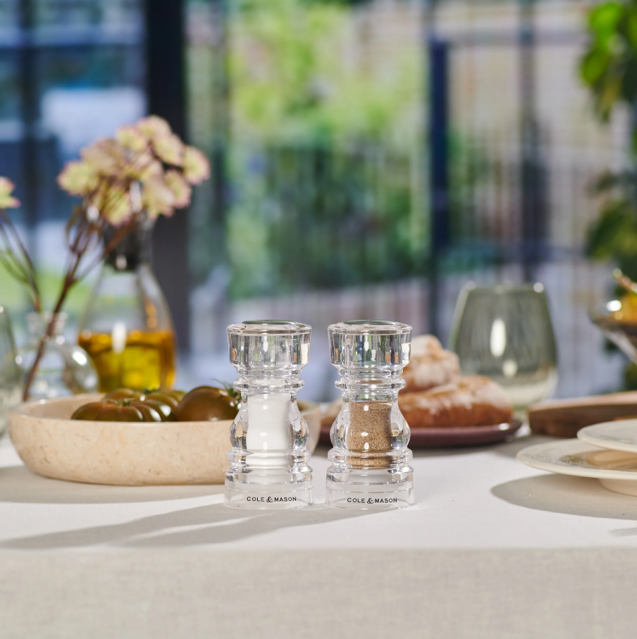 The Cole & Mason London Acrylic Salt & Pepper Shakers bring simple elegance and everyday practicality to your table. Inspired by London’s Art Deco and industrial architecture, their timeless design fits seamlessly into both casual and formal dining.