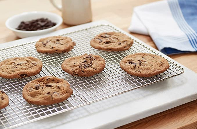 The Fox Run Cooling Rack is suitable for all sorts of baked goods. Its grids are perfectly placed for good air circulation and quick cooling of your cookies and other foods. Measuring 12” x 17”, this cooling rack can hold 8-10 large cookies or a half-sheet cookie pan. While on the cooling rack, you can also glaze or frost your baked goods.