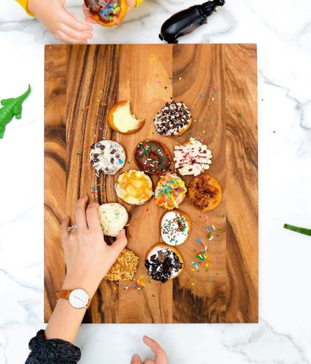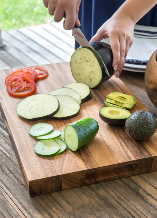 Quality Acacia Hardwood: Made from high-quality Acacia hardwood, this chop board is not only durable but also features a natural beauty that enhances any kitchen decor. The wood's unique, rich, shimmering colors and grain patterns make each piece a one-of-a-kind work of art.