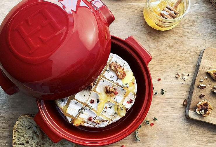 This Emile Henry Clay Beige Cheese Baker is just what you need to make indulgent baked cheese appetizers and meals. It is great for preparing appetizers like baked brie bites or meals like raclette. You can also serve your perfectly melted cheese on toast or use it as a tasty veggie dip. This cheese baker will work with any type of cheese, including goat and mozzarella.