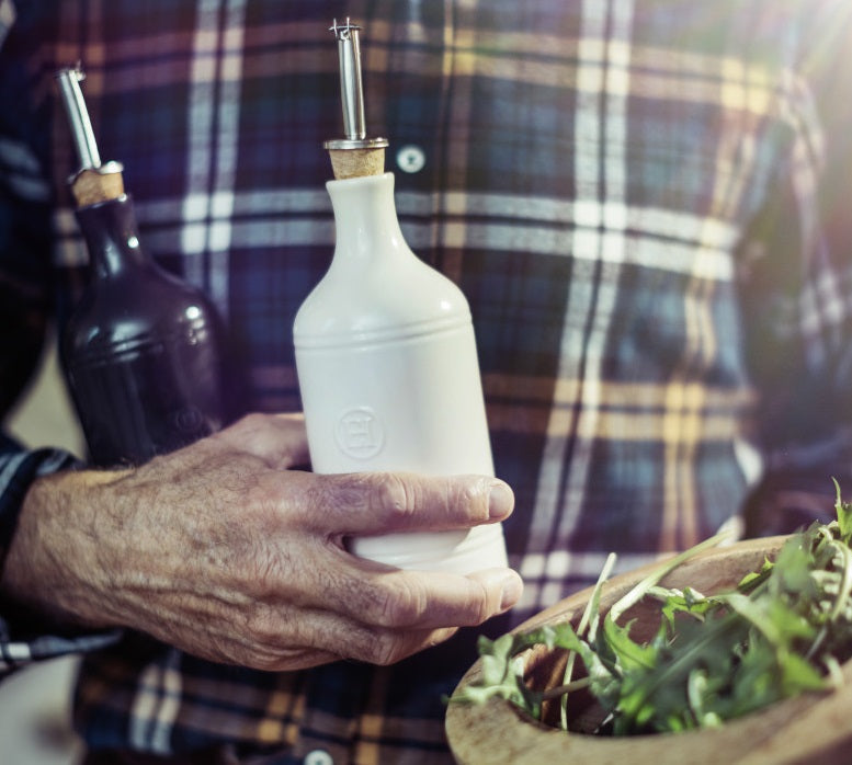 The burgundy red Emile Henry Oil Cruet makes it easy to have oil readily available while you’re cooking. It is made of high-quality ceramics and will preserve and keep your olive oil fresh. This oil cruet is made with an easy-pour spout for precise pouring and drizzling.