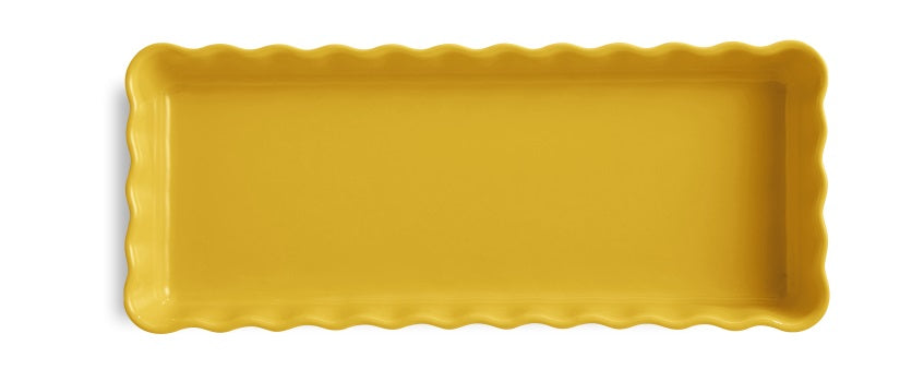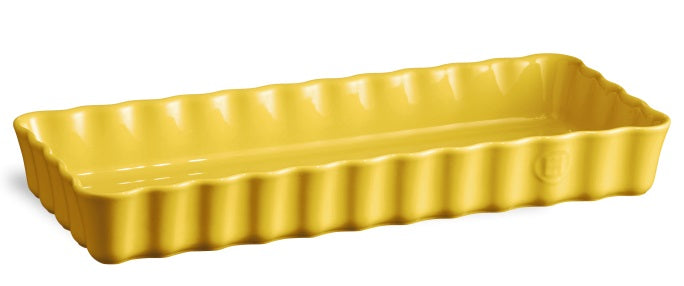 Made of high resistance ceramics, this tart dish will bake everything evenly and with nice edges. It is also scratch-resistant, dishwasher safe, and suitable for use in both the microwave and freezer. A solid Provence yellow color, this ceramic dish will add a splash of color to your table. This French-made product comes with a 10-year guarantee from Emile Henry. The tart dish measures 37 x 15 cm / 14.5 x 6 inches.