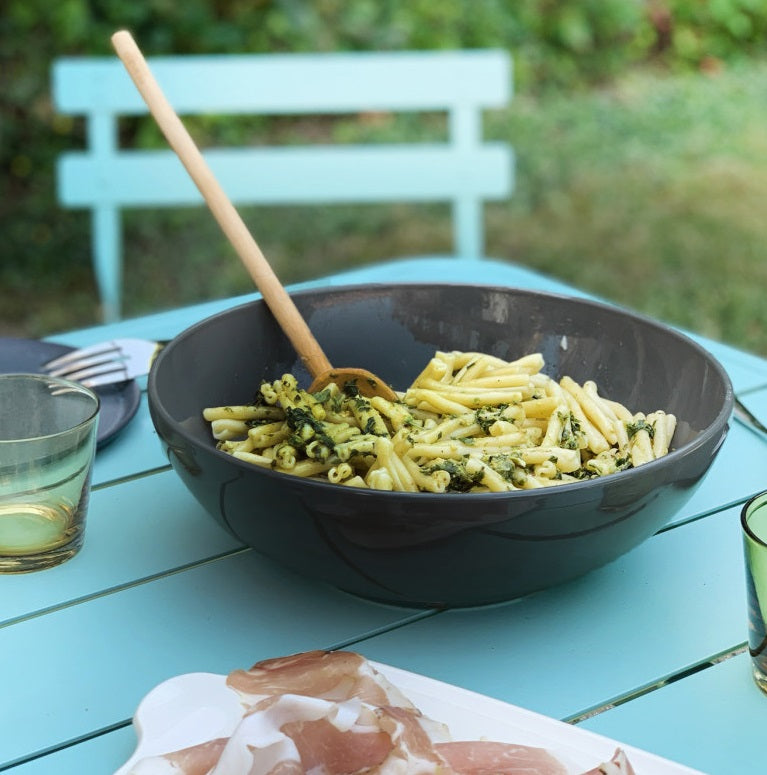Its blue-flame color is modern and will give your dining room a warm ambiance. This Emile Henry small salad bowl was produced in France and comes with a 10-year guarantee. The salad bowl measures 22 cm / 8.5 inches in diameter.