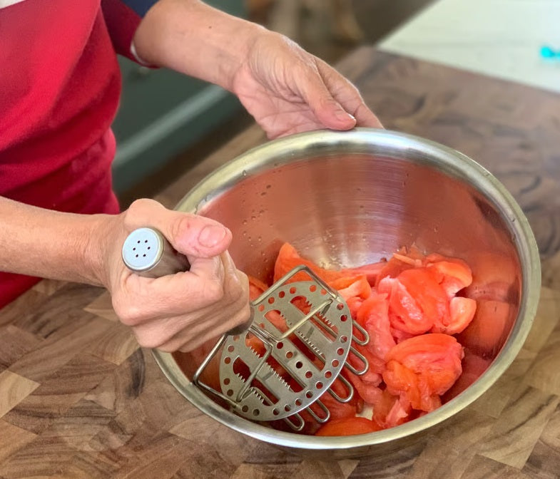 Fox Run's Multi-Level Masher is designed to make your kitchen tasks smoother and more efficient. Featuring an ergonomic press and release action handle, this tool simplifies the mashing process, allowing you to effortlessly mash tomatoes, potatoes, apples, and more with excellent results.