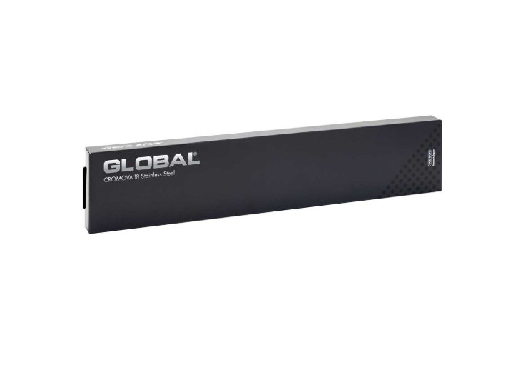 The Global Santoku Knife features a 4.75-inch fluted blade made from corrosion-resistant CROMOVA 18 stainless steel. It’s ideal for chopping, slicing, and mincing small ingredients with precision.