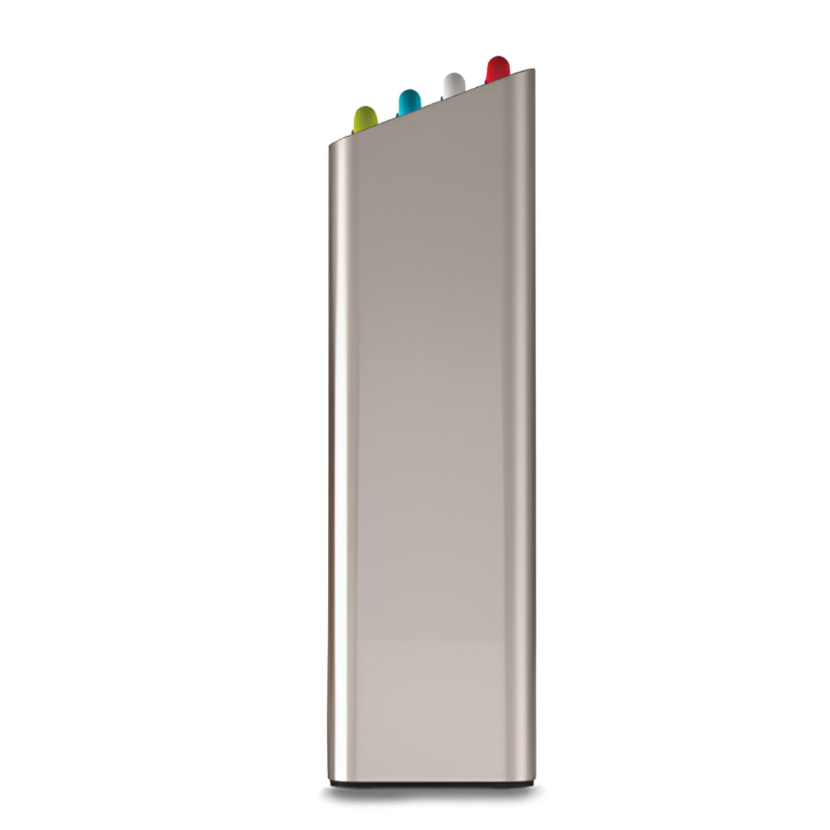 Stylish stainless-steel-look case with a small footprint fits neatly on countertops or in cupboards