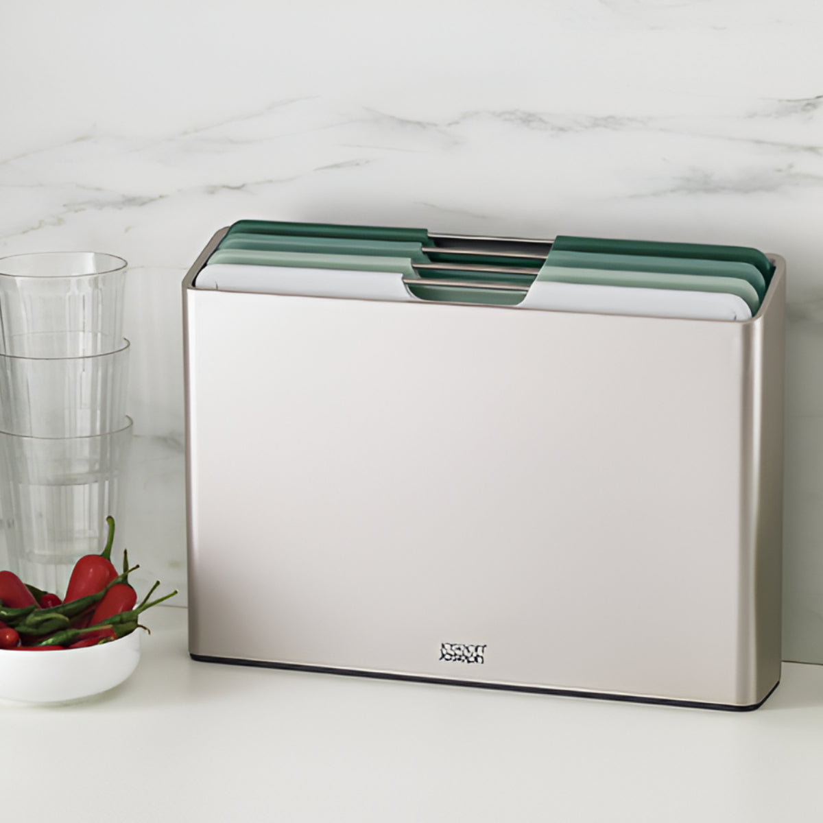 The Cutting Board Set by Joseph Joseph brings color-coded organization, smart design, and calming style to your kitchen—making meal prep more hygienic and visually harmonious.