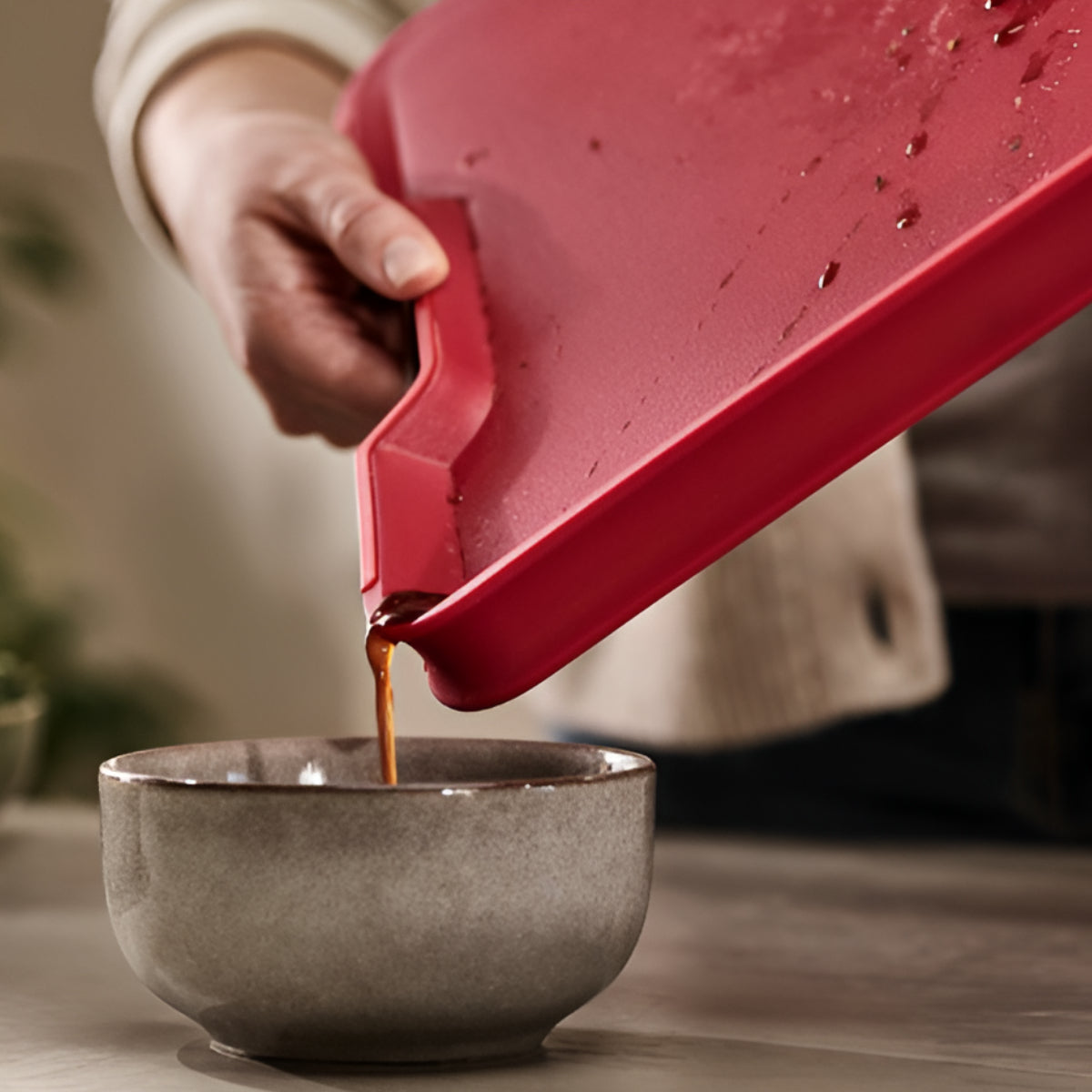 The Chopping Board by Joseph Joseph, in a bold red finish, is the ultimate multi-purpose prep surface—designed to handle slicing, carving, and catching juices with smart, mess-free efficiency.