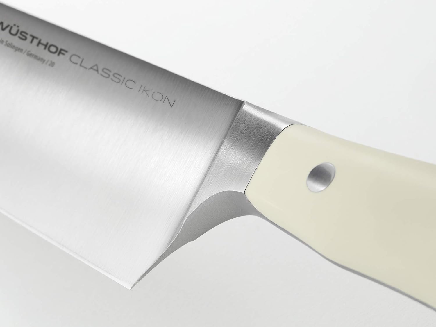 The Wüsthof Knife Block Set in Classic Ikon Crème combines high performance with modern style. Featuring crème-colored handles and an elegant ash wood block, this 7-piece set brings a touch of luxury to everyday cooking.