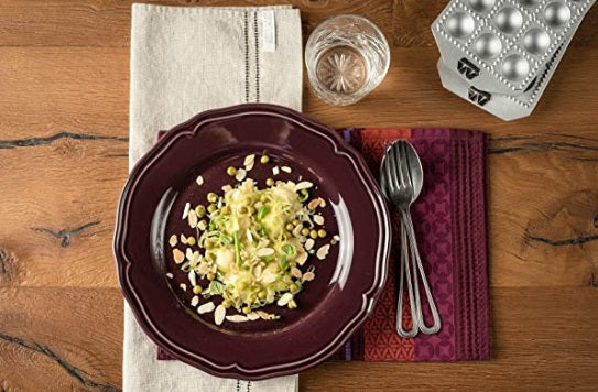 Great for large families, you can make a couple of dozen portions of ravioli all at once. It makes a traditional, 1.5” / 40mm round ravioli with fluted edges. Easy to clean and maintain, this aluminum ravioli maker mold should be hand-washed in soapy water. The ravioli maker set is made in Italy and comes with a rolling pin included.