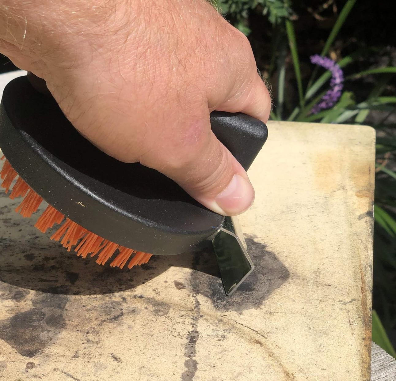 The Outset Cleaning Brush for Salt Block makes it easy to keep your salt blocks, pizza stones, and cast iron pans clean without scratching or damage. Its durable nylon bristles gently remove baked-on residue, while the built-in stainless steel scraper tackles tougher spots with ease.