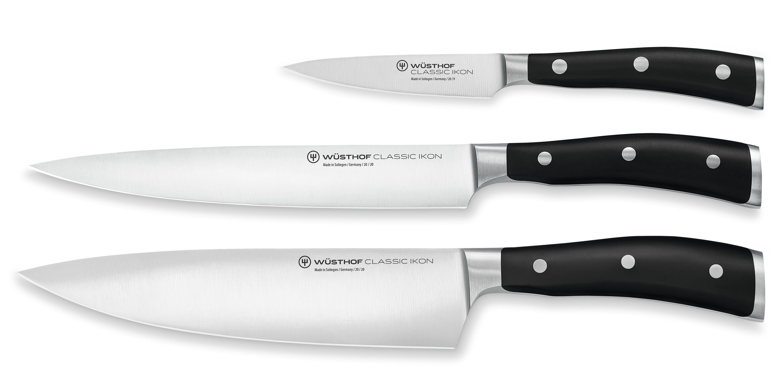 Wüsthof Utility Knife Set is crafted for everyday tasks with forged strength and precision. This 3-piece Classic Ikon collection includes a chef’s knife, paring knife, and carving knife—each built for control and balance in the kitchen.