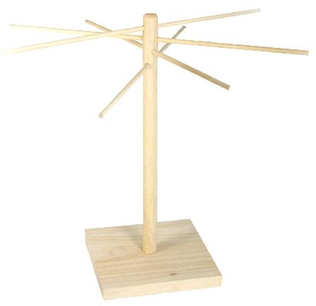 The pasta drying rack is perfect for drying homemade pasta. The rack is made of wood, stands 43cm / 17" tall, and provides you with 4 different sized rods for hanging and drying pasta. The pasta drying rack is easy to assemble and comes in a gift box.