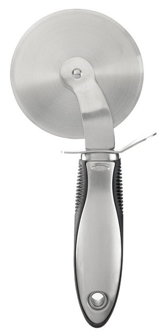 This easy to use pizza wheel from Oxo Steel has a durable brushed stainless steel construction with a soft grip for added comfort. The sharp cutting blade does a great job of slicing pizzas, without needing much effort on our part. The pizza cutter features a thumb guard for added safety and is dishwasher safe.