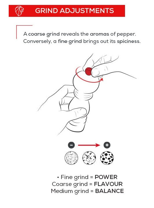 At its core, the mill features Peugeot's lifetime-guaranteed steel mechanism, engineered to unlock the full flavor profile of peppercorns. It’s versatile enough to handle black, white, green, red, and pink peppercorns (up to 15% in a blend) as well as coriander seeds. The adjustable grind button allows for easy customization, ensuring the perfect grind for every dish.