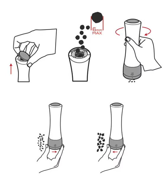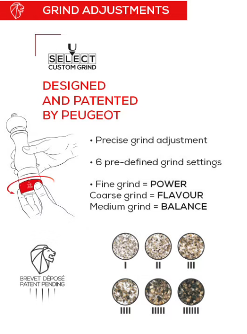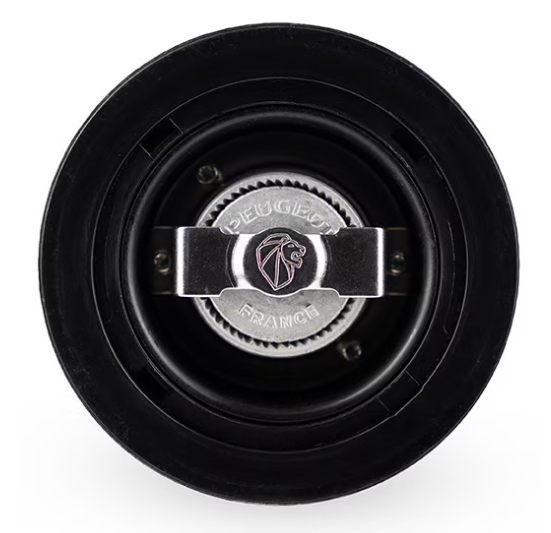 The beautifully designed Daman pepper mill by Peugeot features the patented u'Select system, allowing you to easily adjust the grind setting to any point between powdery fine and very coarse. Peugeot removed the center shaft of the mill and the reservoir stopper is magnetized to provide the benefit of greater peppercorn capacity and easier re-filling. The Daman pepper mill with acrylic top and stainless steel bottom has a lifetime warranty, stands 16 cm / 6.5 inches tall, and is made in France.