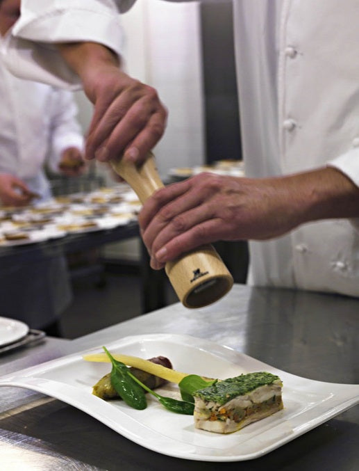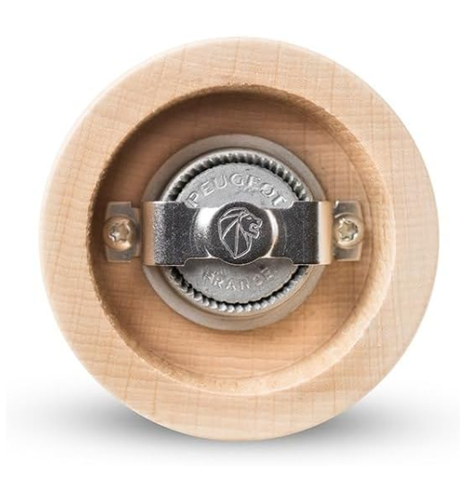 The gorgeous Hostellerie pepper mill from Peugeot is made from natural colored beech wood that was grown, harvested, dried, shaped, and finished in France. The pepper grinder has a high quality grinding mechanism, specially designed to release maximum flavor and aroma by first cracking each peppercorn before it is ground. You can easily adjust the coarseness of the grind by turning the stainless steel top nut. The Peugeot pepper mill was made in France, stands 22cm / 8.75 inches tall, and has a lifetime warranty.