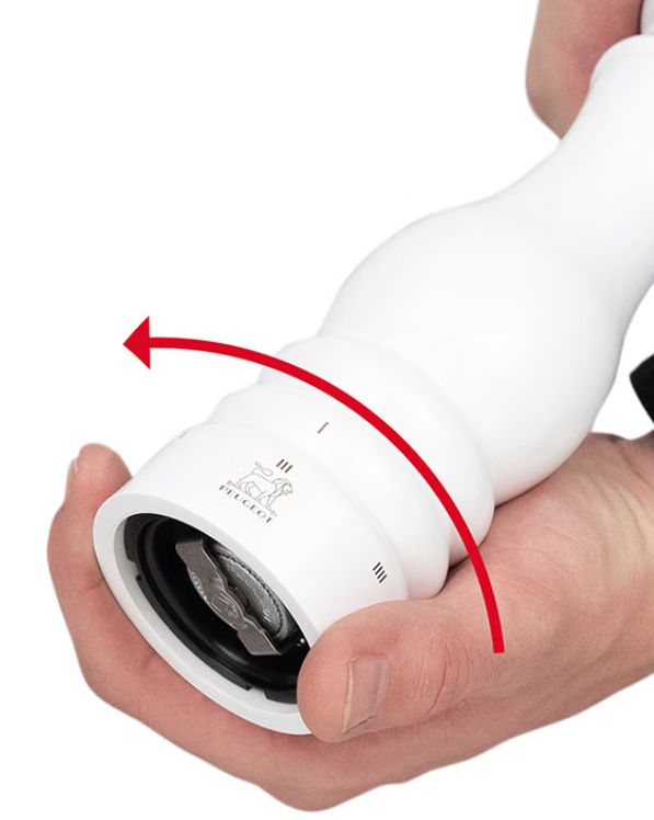 The Paris pepper mill from Peugeot features a beautiful white lacquer finish and stands 18cm / 7 inches tall. The gorgeous pepper mill comes with the patented u'Select grinding mechanism that allows you to select from 6 grind settings, from anywhere powdery fine to very coarse. To select your preferred coarseness, simply turn on the bottom part of the mill. To refill, unscrew the nut on top and add peppercorns. The Peugeot Paris pepper mill comes with peppercorns, is made in France, and has a lifetime warranty.