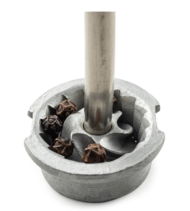 The Paris Chef pepper mill from Peugeot features a beautiful brushed stainless steel finish and stands 21cm / 8 inches tall. The gorgeous pepper mill comes with the patented u'Select grinding mechanism that allows you to select from 6 grind settings, from anywhere powdery fine to very coarse. To select your preferred coarseness, simply turn on the bottom part of the mill. To refill, unscrew the nut on top and add peppercorns. The Peugeot Paris pepper mill comes with peppercorns, is made in France, and has a lifetime warranty.