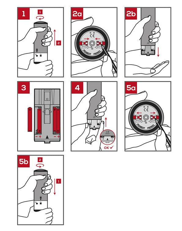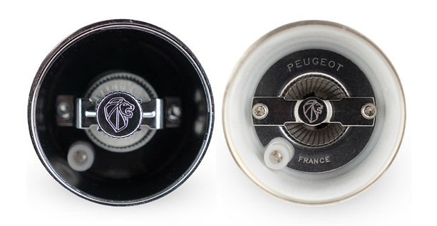 The gorgeous Zeli electric salt and pepper mills by Peugeot feature a brushed chrome finish and a beautifully designed ergonomic shape. Both salt and pepper mill run with 6 AAA batteries (included) and have a light bulb that is mounted in the mill. Two spare light bulbs are included as well. The electric salt and pepper mills run with the touch of a button. The pepper mill can easily be adjusted for coarse, medium, and fine grind, via a thumb-wheel below the mill. The salt mill is set for medium grind. The Peugeot Zeli salt and pepper mill set has a lifetime warranty, is made in France, and both mills stand 15cm / 6" tall.