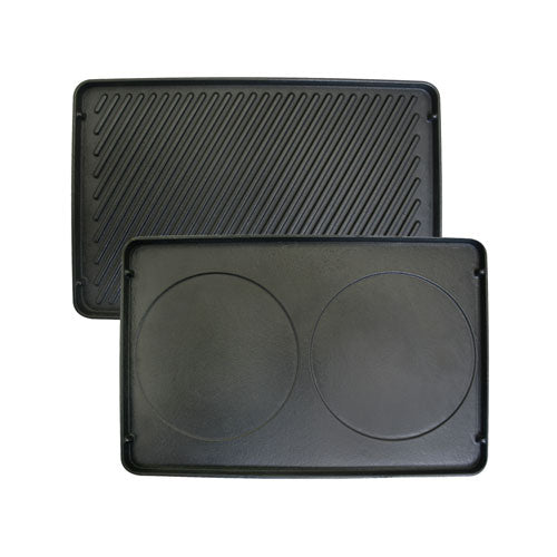 The Swissmar Classic Cast Iron Grill Plate is designed for durability and versatility. Its reversible surface lets you grill on one side and make crêpes on the other. The enamelled matte finish ensures even heating and easy cooking.