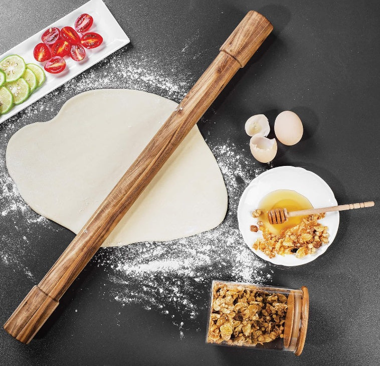 Made from Acacia wood, known for its durability and striking patterns, these rolling pins are not only practical but also add a touch of elegance to your kitchen. Acacia wood's natural properties also ensure that each rolling pin is unique, with rich, shimmering colors that stand out as you bake.
