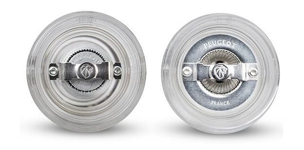 Make adding salt and pepper to your food fast and easy with the Peugeot Nancy Salt and Pepper Mill Set. It attractively displays salt and pepper on your kitchen countertop or dining room table. Made of acrylic with a French design, this duo salt and pepper mill is stylish and has a universal appeal. Each mill is just under 12 cm / 5 inches in height and fits comfortably in your hand.