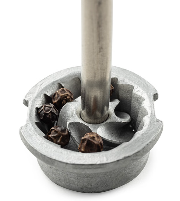 Suitable for peppercorns up to 6 mm and dry salt up to 4 mm