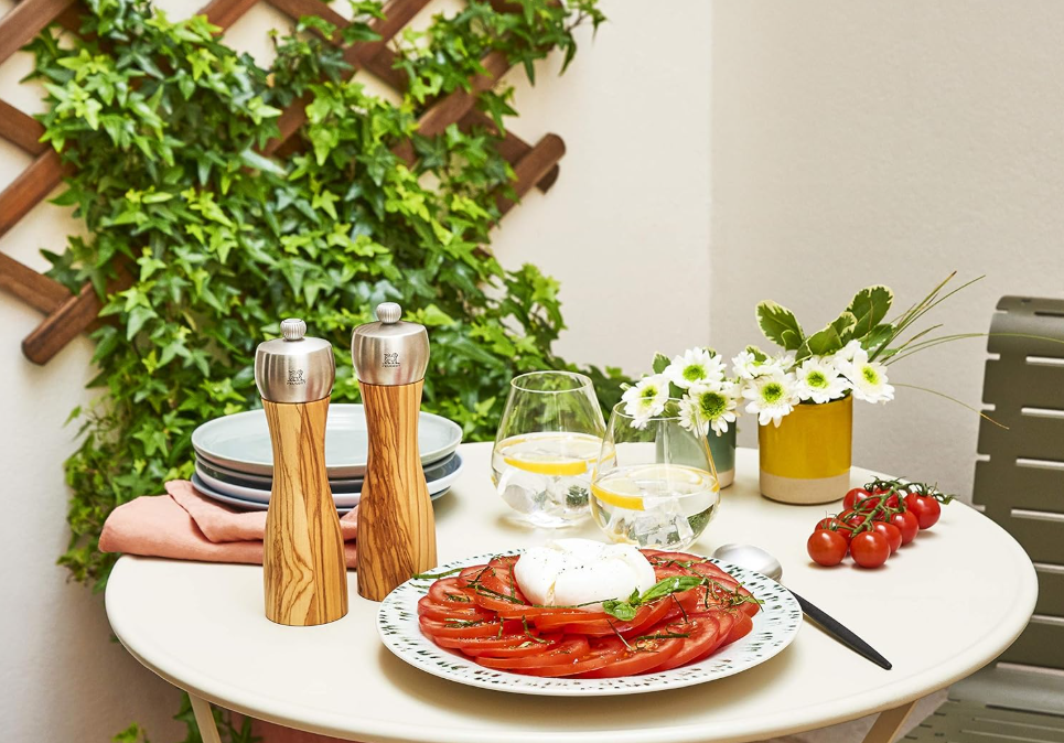 The stunning Fidji salt mill from Peugeot is made from olive wood with a silky smooth touch. The salt grinder has a brushed stainless steel top and a high quality grinding mechanism, specially designed to release maximum flavor and aroma by first cracking each sea salt rock before it is ground. You can easily adjust the coarseness of the grind by turning the top nut. The Peugeot pepper mill was made in France, stands 20cm / 8 inches tall, and has a lifetime warranty.
