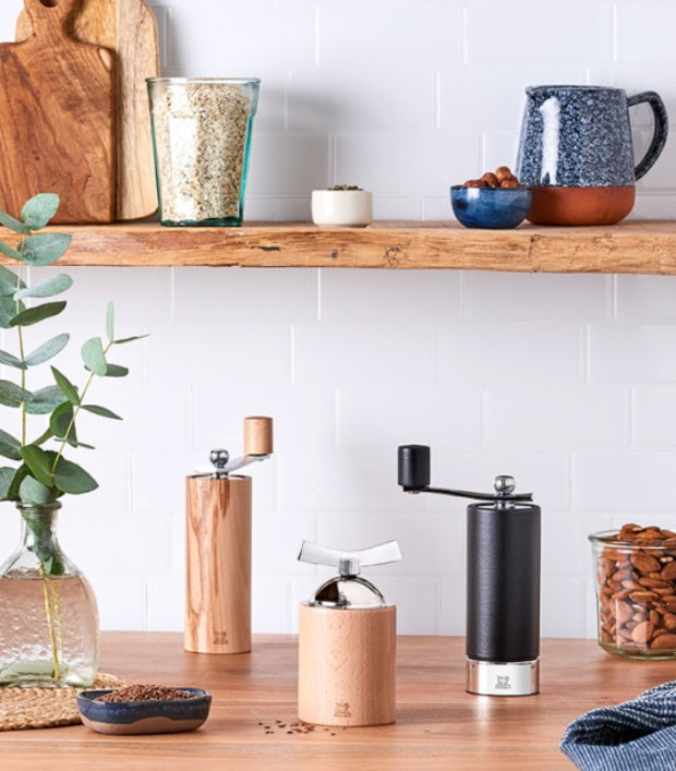 Grind coarse salt or sea salt in this handy kitchen device. It is made by Peugeot, a French company with a long history of manufacturing both pepper and salt mills. With your purchase, you’ll receive a lifetime warranty on its grinding mechanism.