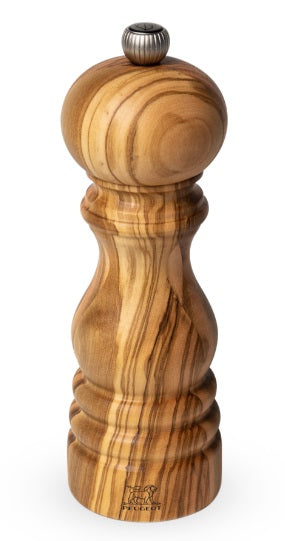 The Peugeot Paris Olivier salt mill stands 23 cm / 9 inches in height and has a classic French design. Its olive wood design is ultra-modern and has a subtle sheen that will add charm and elegance to your table setting. All Peugeot products are made in France and come with a lifetime warranty on the grinding system.