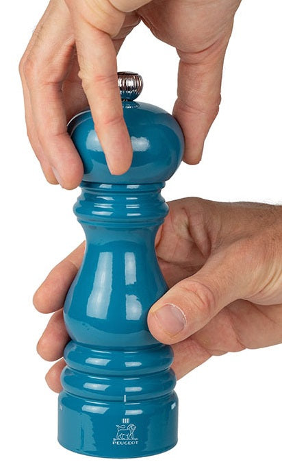 Since its debut in 1987, the Paris salt mill has been a favorite among culinary experts worldwide. Now, in a stunning Pacific blue finish, Peugeot reinvents its classic silhouette, transforming the mill into a genuine piece of decoration. This 18cm / 7 inches tall mill combines elegance and functionality, making a bold statement on any table.