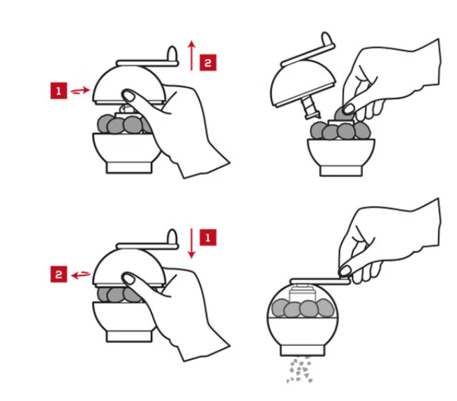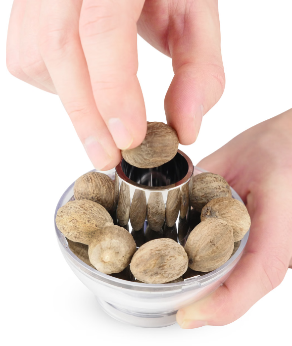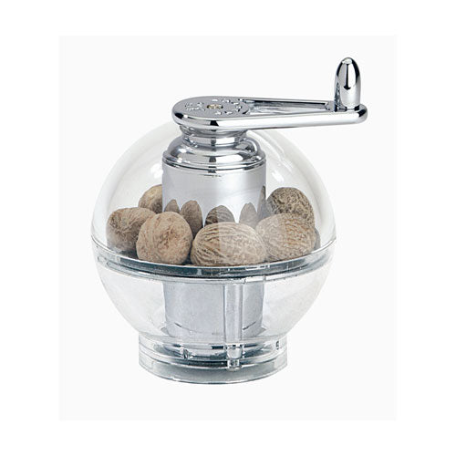 The Tidore nutmeg mill by Peugeot is designed to make it easy to get fresh, full nutmeg flavor, without risking finger safety. The nutmeg mill has 4 claws that hold whole nutmegs in place. When the handle is turned, 2 safety concealed stainless steel blades ensure the nutmeg to be very finely ground, releasing the fresh flavors and nutmeg aromas. The nutmeg mill comes with 7 nutmegs, is made in France, and has a lifetime warranty.