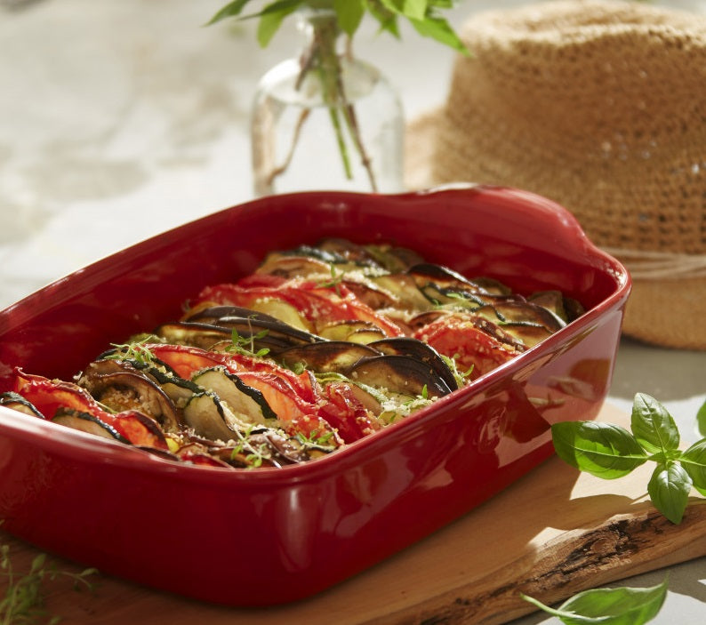 Craft, cook, and serve your lasagnas, gratins, and roasts with finesse using the Emile Henry rectangular oven dish.