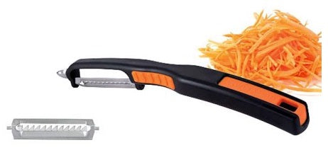 This straight peeler from Swissmar comes with a sharp stainless steel blade with julienne teeth and features a non-slip handle that will fit comfortably in your hand. The julienne peeler makes it easy for you to add perfectly thin strips of vegetables or fruits to any dish. The julienne peeler has a blemish remover built-in and is proudly made in Switzerland.