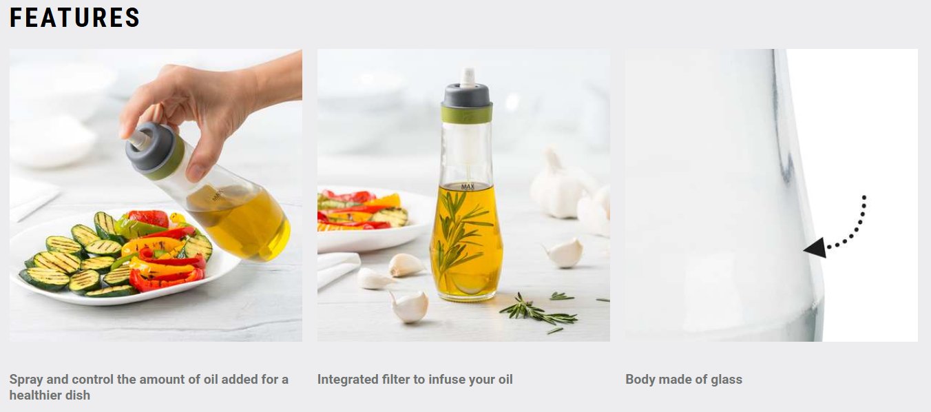 With a 10 oz glass body and a fresh green and grey finish, this oil spray bottle adds style and precision to your kitchen routine.