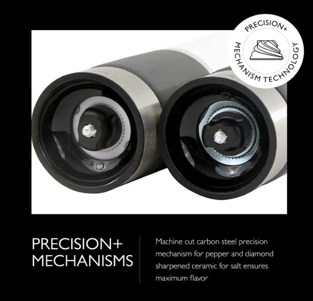 Mechanism: Carbon steel for pepper, ceramic for salt