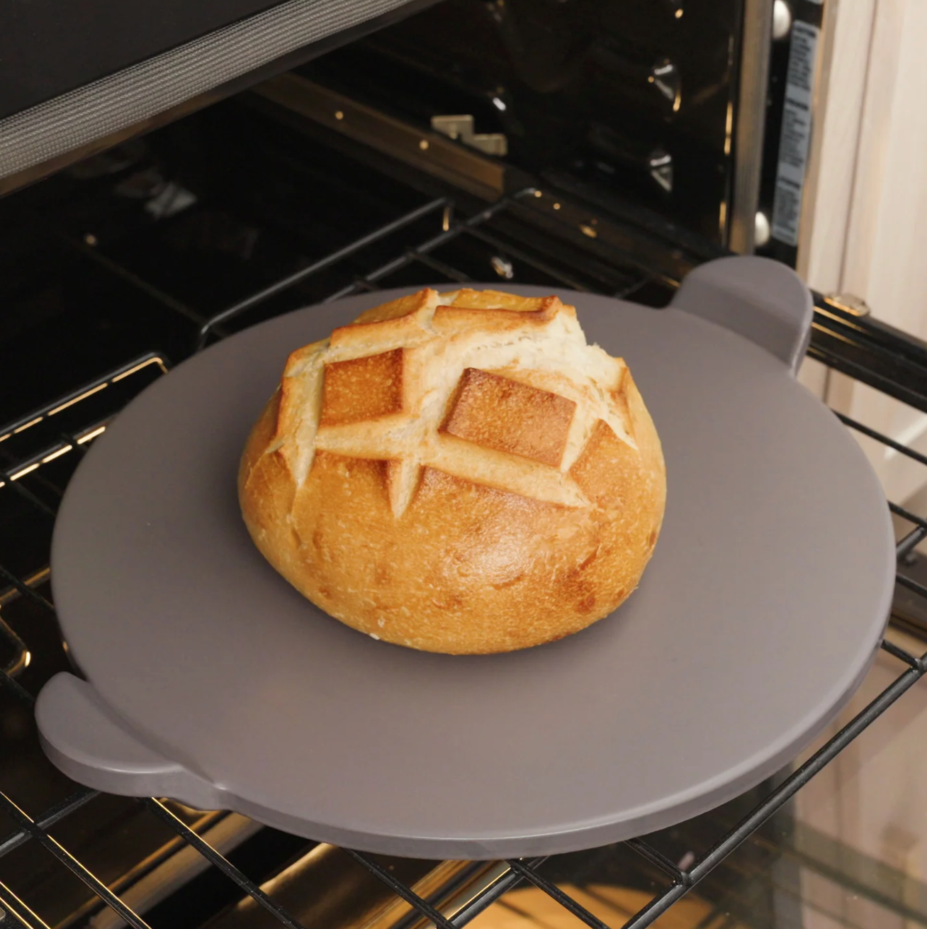The 15-inch baking stone is made from high-heat cordierite for strength and reliability. Its glazed surface resists fats and oils, and the built-in handles make oven transfers safe and easy.