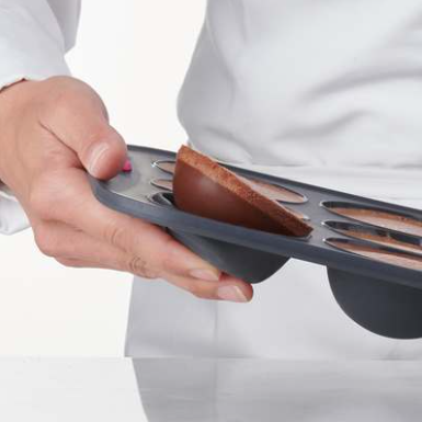 The silicone dome baking pan is flexible, non-stick, and safe to use in the oven, microwave, or freezer. Cleanup is quick too—just pop it in the dishwasher when you're done.